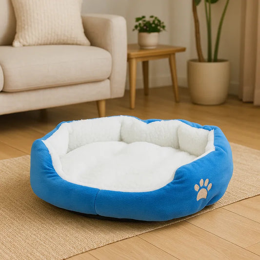 • Coussin pour chat bleu moelleux rond confort doux repos